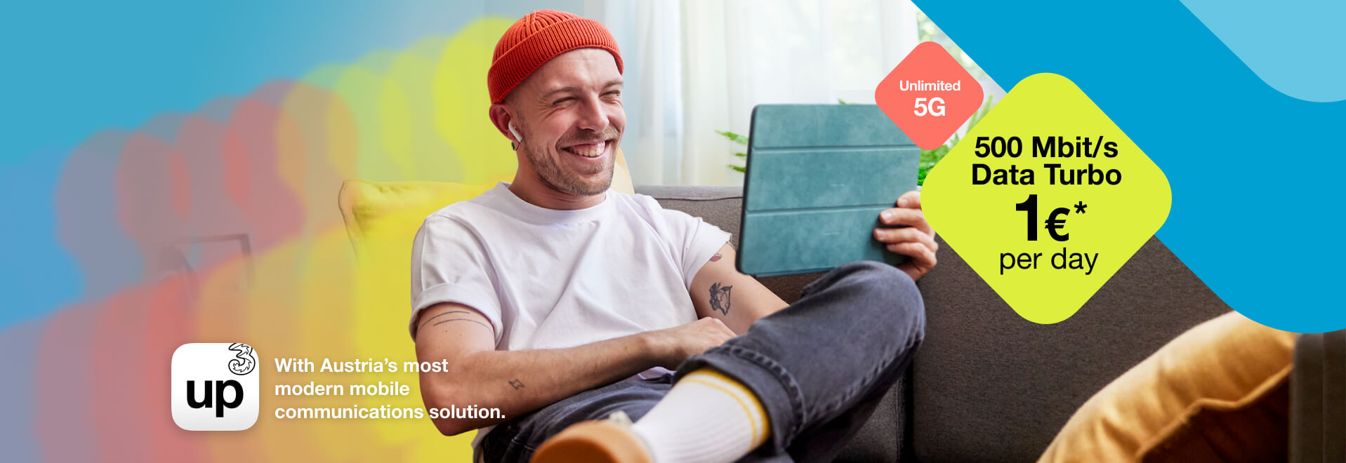 - Sign up on a desktop computer (notebook, computer) at www.drei.at/up: you’ll be able to choose between an eSIM and physical SIM card during the order process. If you choose an eSIM, you’ll receive a QR code that will enable you to download your eSIM profile once you’ve finished signing up. If you choose a traditional SIM card, we’ll send it to the address you provide. Once you receive it, it will have to be activated via the up app. The only way to manage your up plan (settings, pausing, add-ons, etc.) is via the up app.