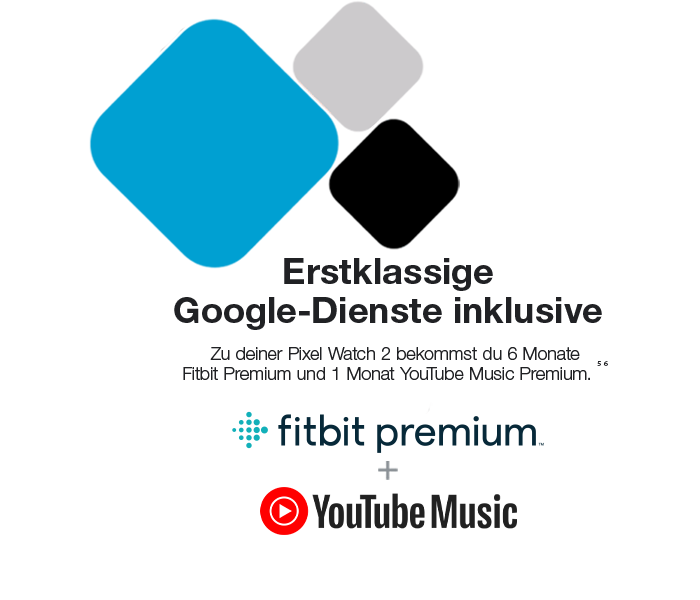 ⁵ Beim Kauf eines teilnahmeberechtigten Geräts. Nur für neue und wiederkehrende Fitbit Premium-Mitglieder. Die Mitgliedschaft muss innerhalb von 60 Tagen nach Geräteaktivierung gestartet werden. Gültiges Zahlungsmittel erforderlich. Nach dem sechsmonatigen Testzeitraum wird dein Abo kostenpflichtig. 8,99 € pro Monat nach Ablauf der 6-monatigen Mitgliedschaft. Jederzeit kündbar. Mitgliedschaft kann nicht übertragen werden. Inhalte und Funktionen können sich ändern. Unter g.co/fitbitpremium/tos findest du weitere Informationen.