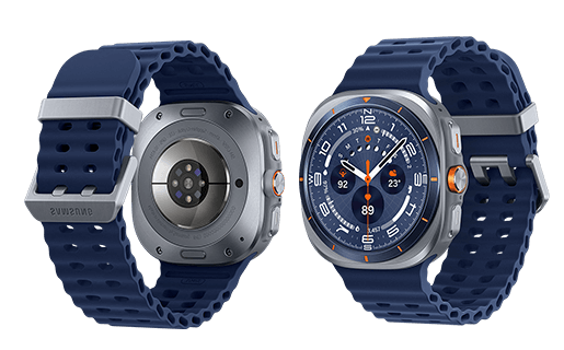 Die Galaxy Watch Ultra (2025) geht mit dir an deine Grenzen – und darüber hinaus. Sie widersteht Hitze bis zu 55 °C, 9.000 m Höhe und 10 ATM Wasserdruck und läuft mit dem neuen, leistungsstarken 3 nm-Prozessors reibungslos. Mit dem Akku, der im Energiesparmodus bis zu 100 Stunden hält, kommst du richtig weit.