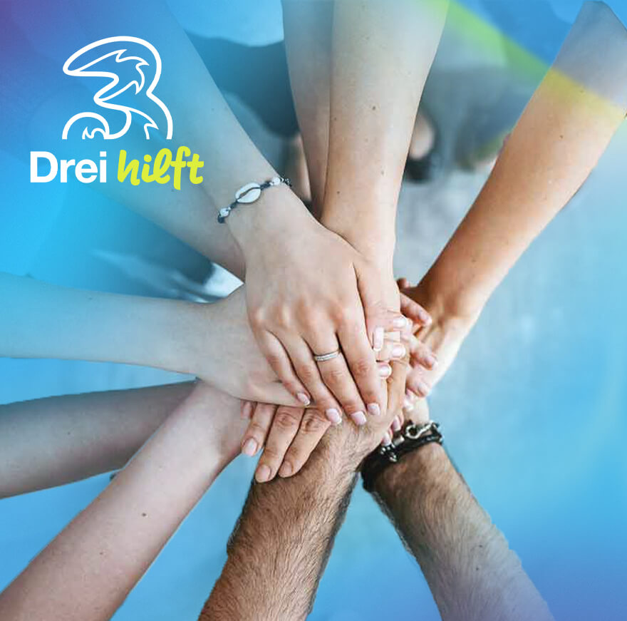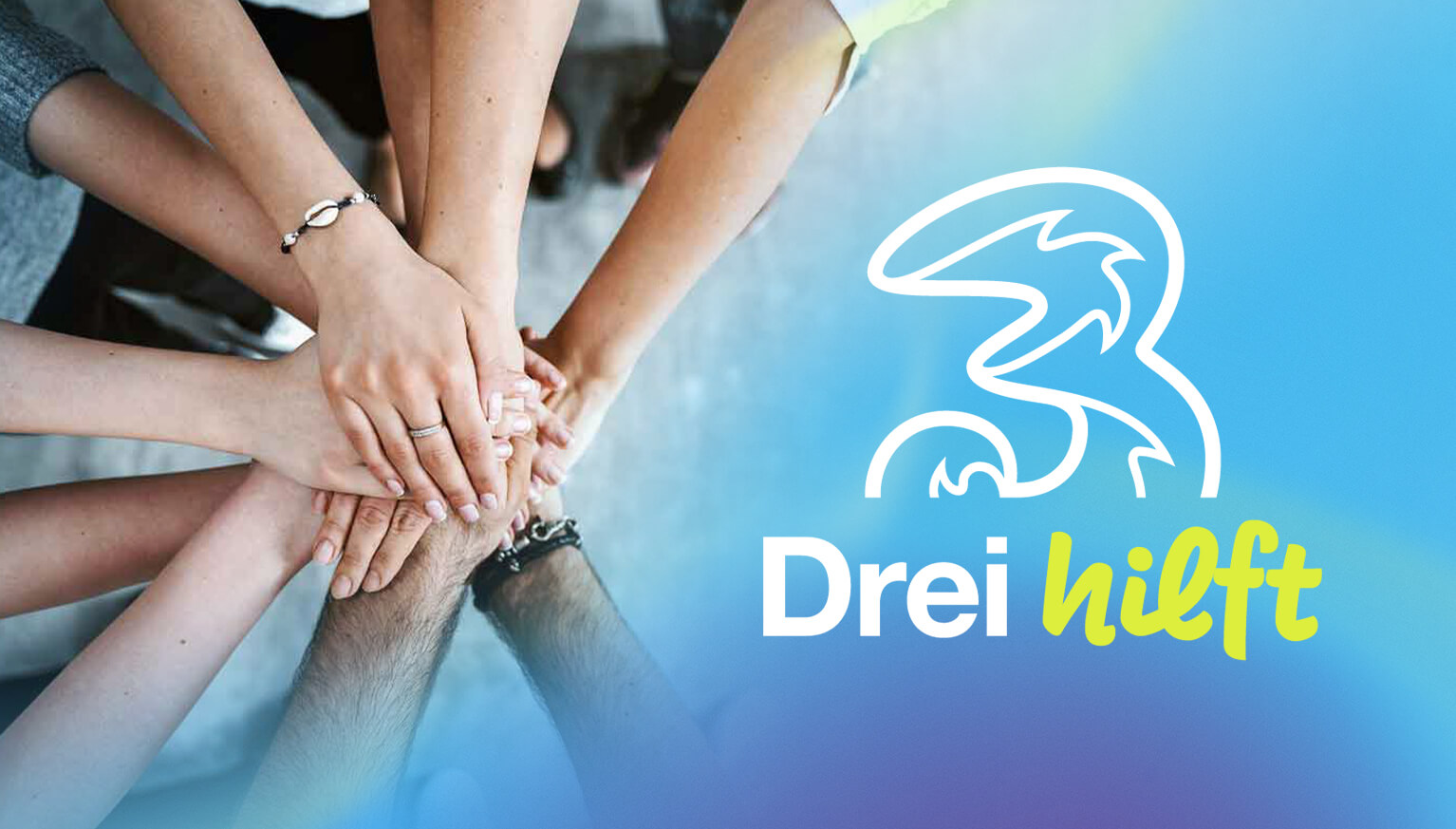 Wir nehmen unsere gesellschaftliche Verantwortung sehr ernst. Deshalb gründeten wir die „Drei Hilft“-Initiative, die in Zusammenarbeit mit einer Vielzahl von Partnern Menschen in Österreich und in weltweiten Krisengebieten unterstützt.