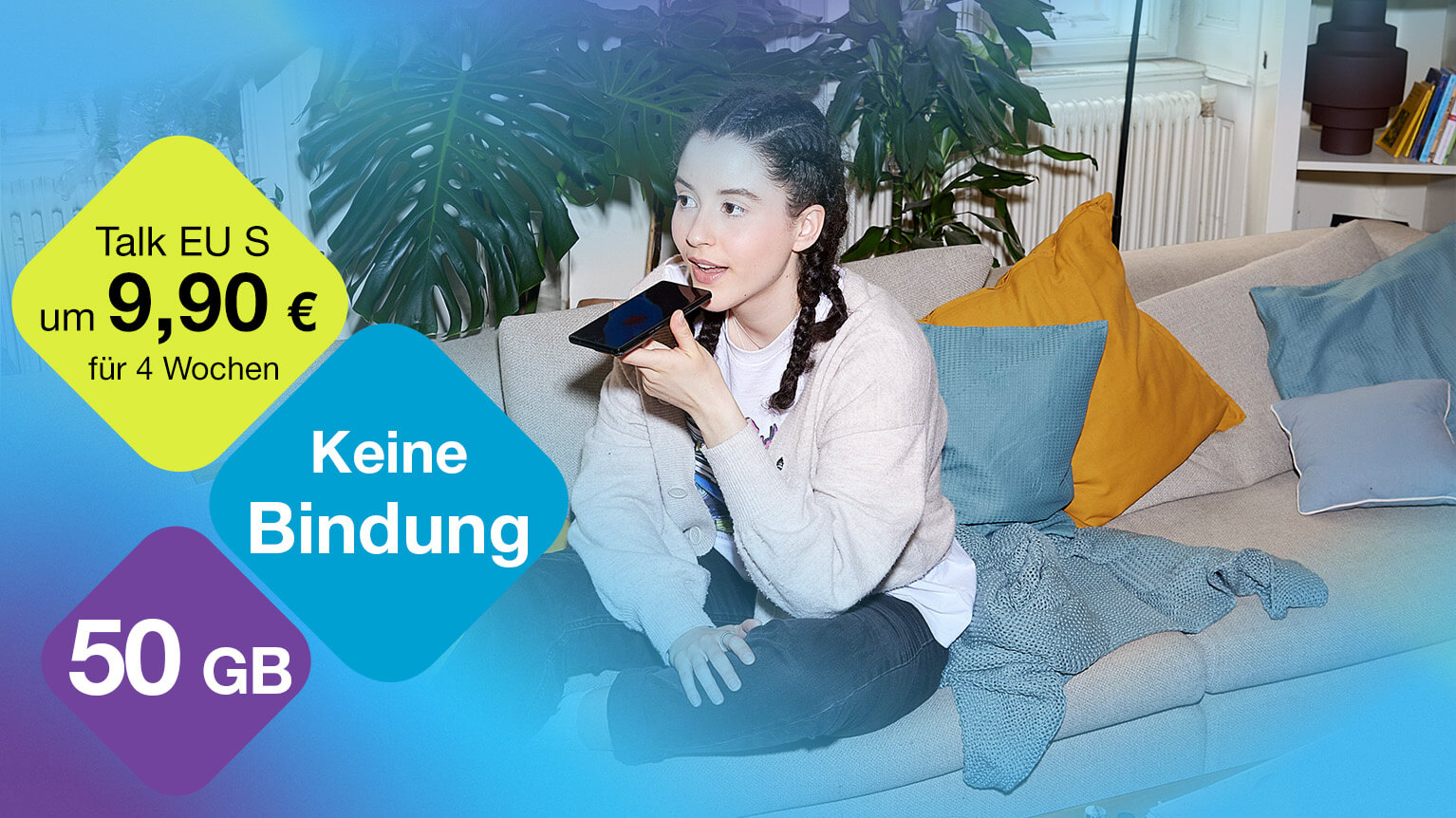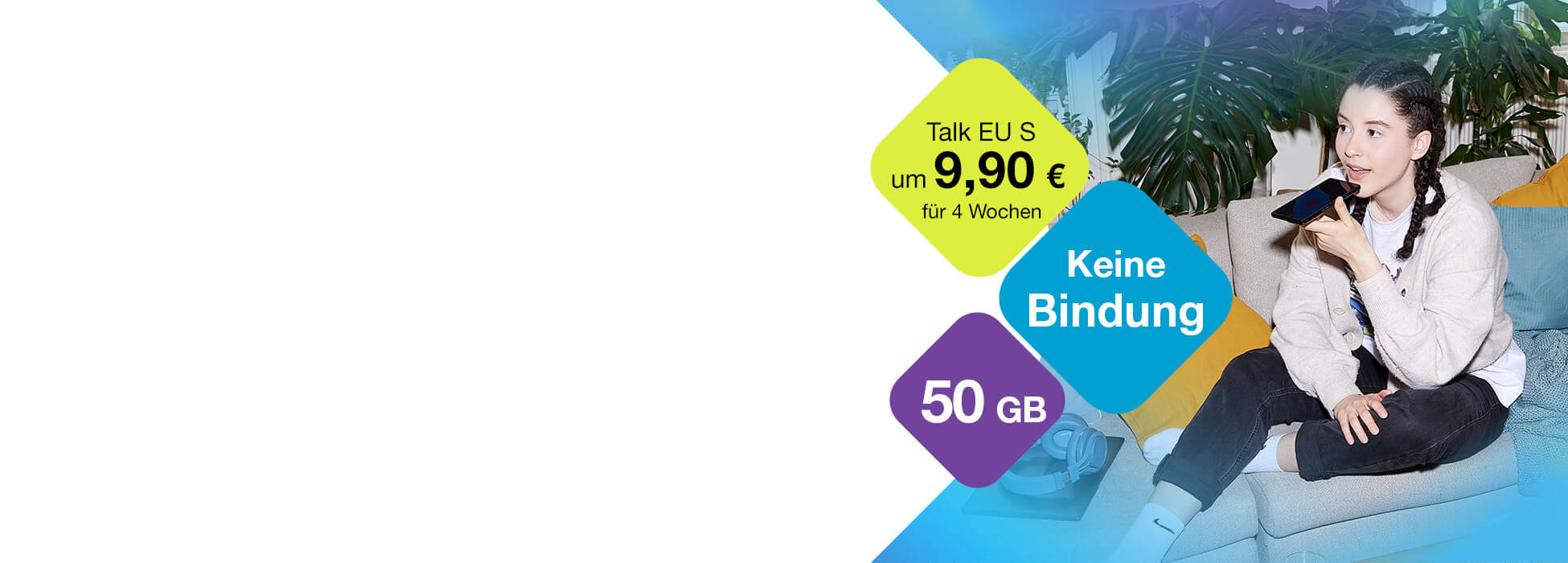 Ohne Bindung: Unser Wertkarten-Tarif, der keine Wünsche offen lässt, inkl. 2.000 Minuten und SMS sowie 50 GB Datenvolumen, davon 13 GB EU-weit verfügbar.